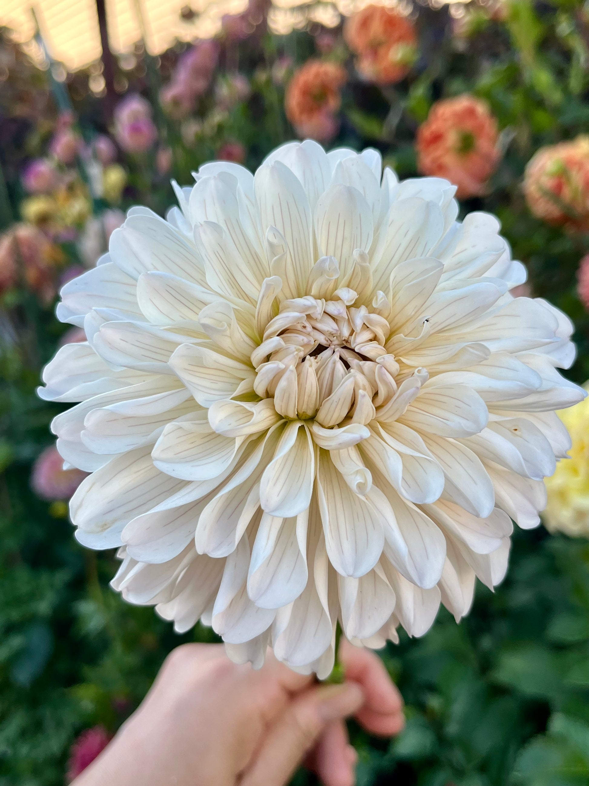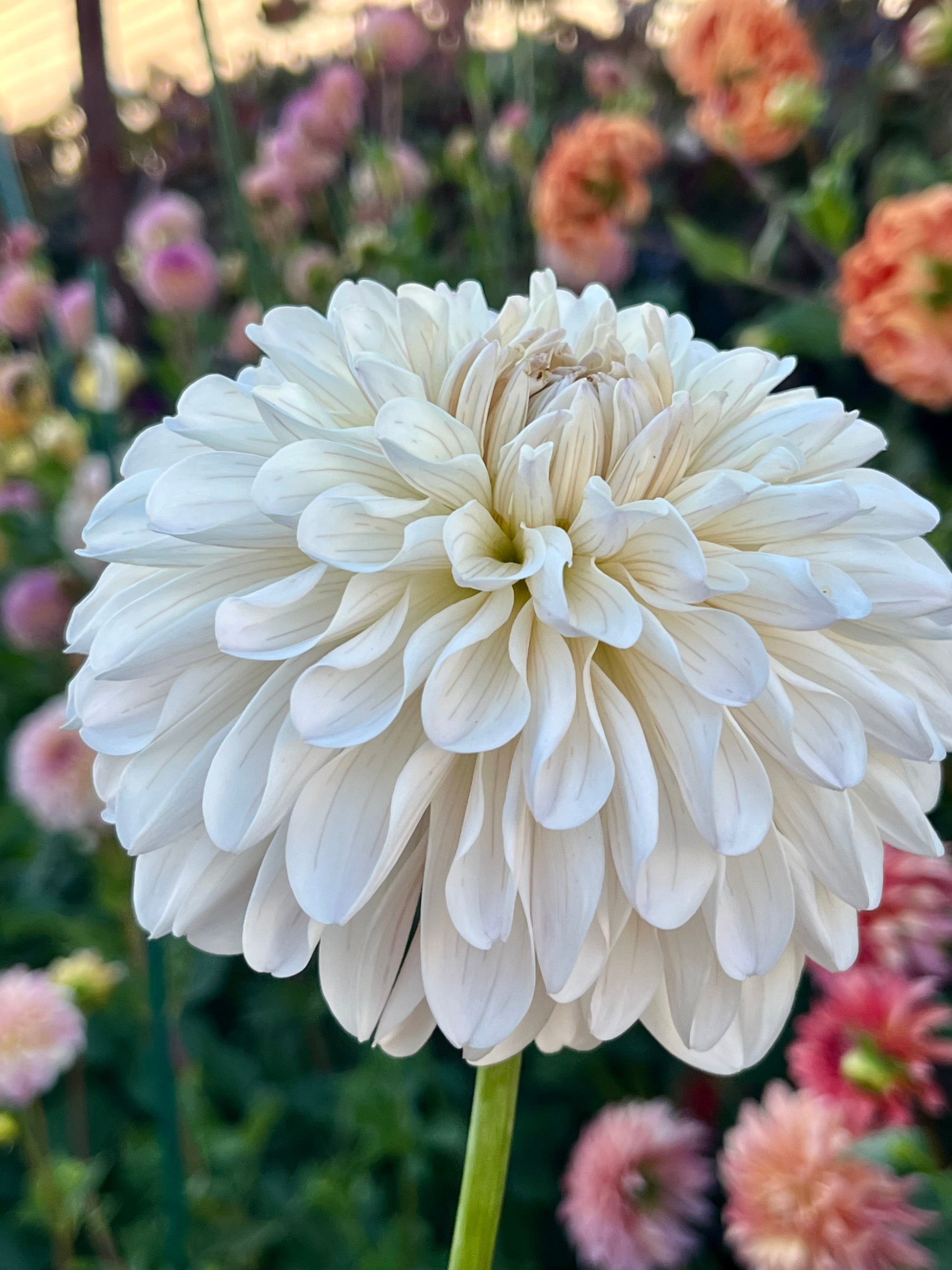 Clasico is a dahlia originating from Japan, featuring soft, elegant hues. Its petals have delicate, subtle lines and curve gently inward, layering to create depth and graceful shadows. Though they appear fragile, the petals are actually very resilient, standing up well to hot sunlight and rain.
